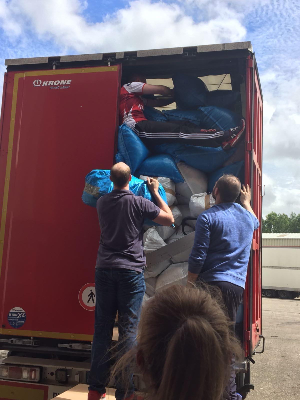 Due to Ukrainian regulations we have to transfer from a Polish truck into a Ukrainian truck after the Polish lorry has crossed the border.